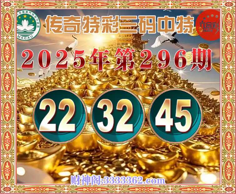 296期: 🥽《传奇特彩》 🥽三码中特🥽【22.32.45】开:22