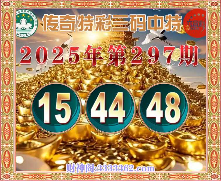 297期: 🥽《传奇特彩》 🥽三码中特🥽【15.44.48】开:44