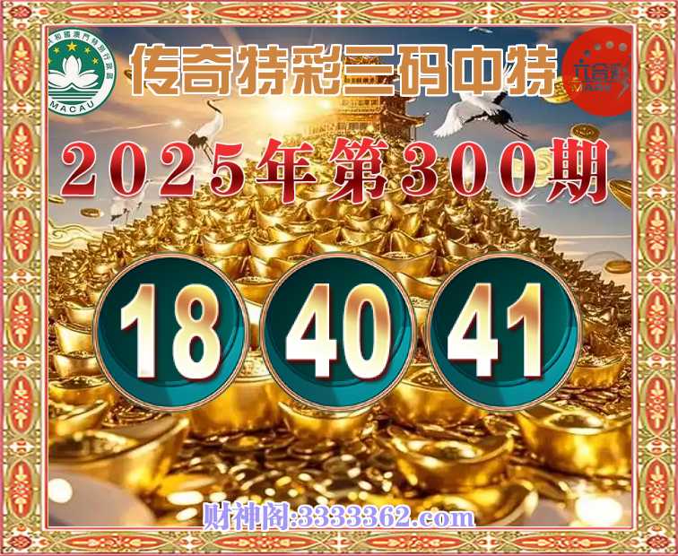 300期: 🥽《传奇特彩》 🥽三码中特🥽【18.40.41】开:40