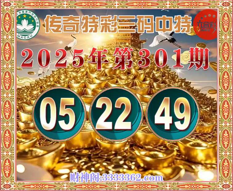 301期: 🥽《传奇特彩》 🥽三码中特🥽【05.22.49】开:05