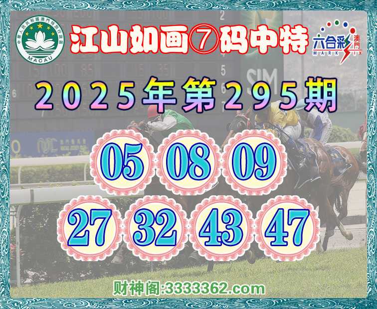 295期:【江山如画】 🥬⑦码中特🥬【05.08.09.27.32.43.47】开:05