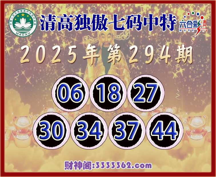 294期:『清高独傲』 🧩七码中特🧩【06.18.27.30.34.37.44】开:18