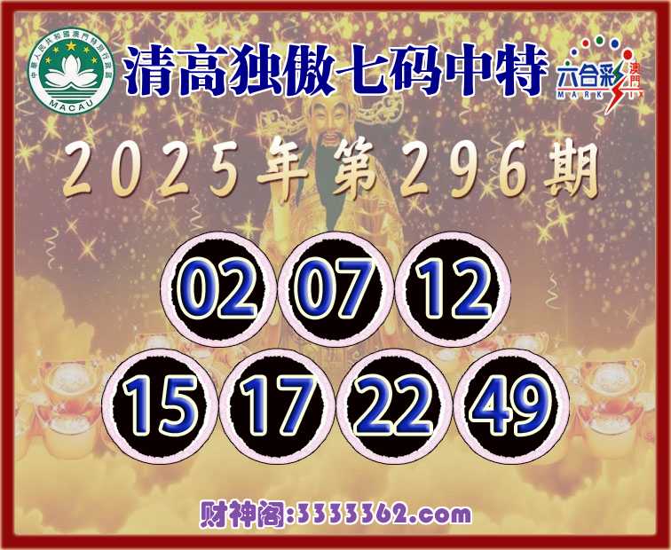 296期:『清高独傲』 🧩七码中特🧩【02.07.12.15.17.22.49】开:22
