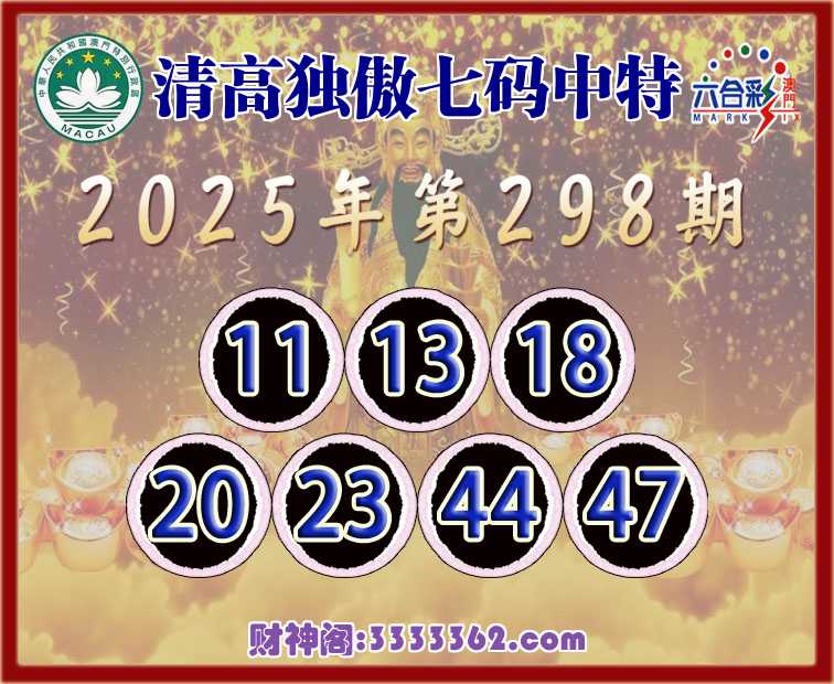 298期:『清高独傲』 🧩七码中特🧩【11.13.18.20.23.44.47】开:23