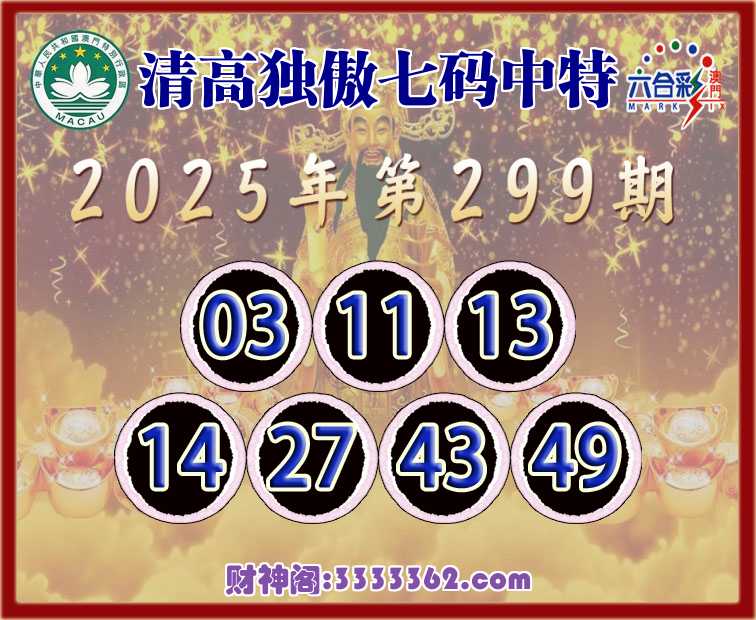 299期:『清高独傲』 🧩七码中特🧩【03.11.13.14.27.43.49】开:49
