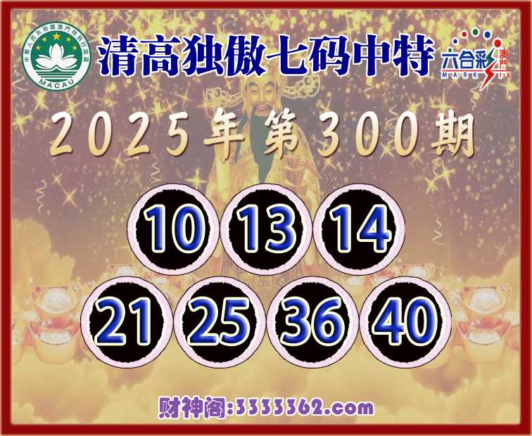 300期:『清高独傲』 🧩七码中特🧩【10.13.14.21.25.36.40】开:40