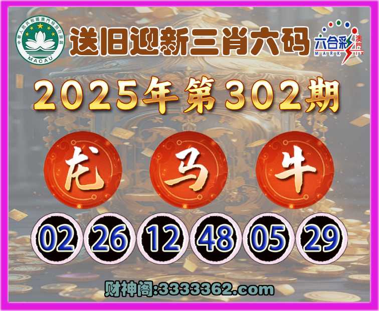 302期:【送旧迎新】 🌳三肖六码🌳【龙马牛】开:00准