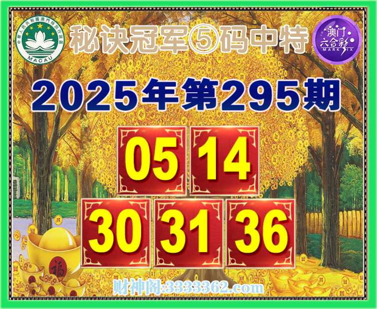 295期:『秘诀冠军』 🕯⑤码中特🕯【05.14.30.31.36】开:05