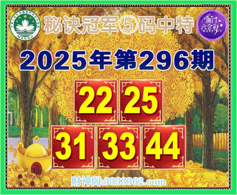 296期:『秘诀冠军』 🕯⑤码中特🕯【22.25.31.33.44】开:22
