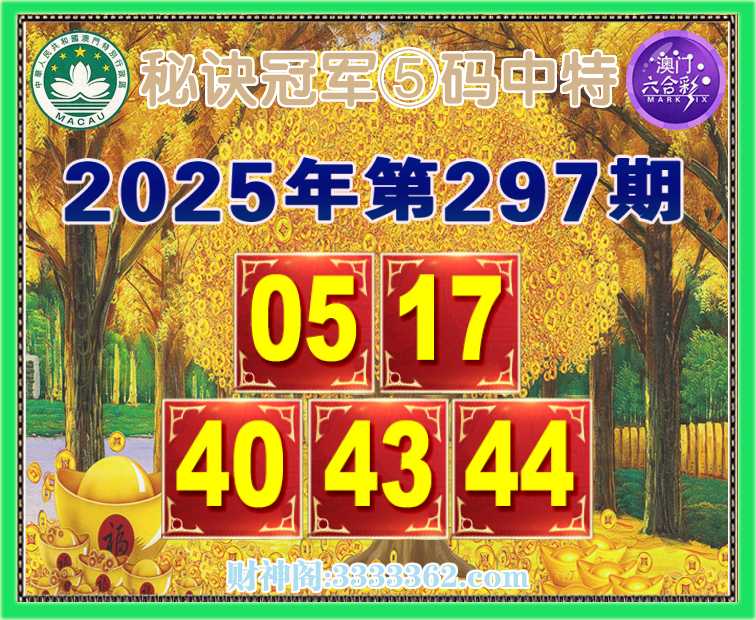 297期:『秘诀冠军』 🕯⑤码中特🕯【05.17.40.43.44】开:44