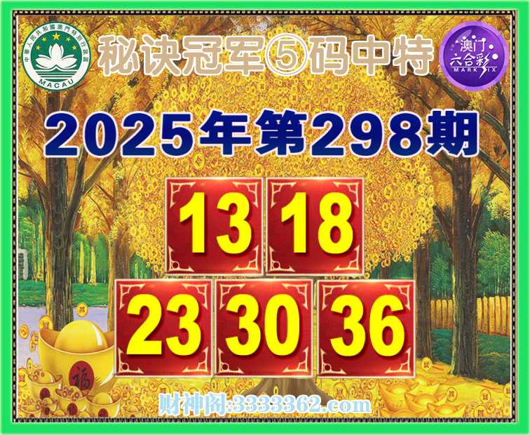298期:『秘诀冠军』 🕯⑤码中特🕯【13.18.23.30.36】开:23