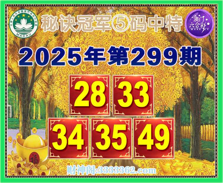 299期:『秘诀冠军』 🕯⑤码中特🕯【28.33.34.35.49】开:49