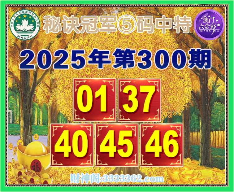 300期:『秘诀冠军』 🕯⑤码中特🕯【01.37.40.45.46】开:40