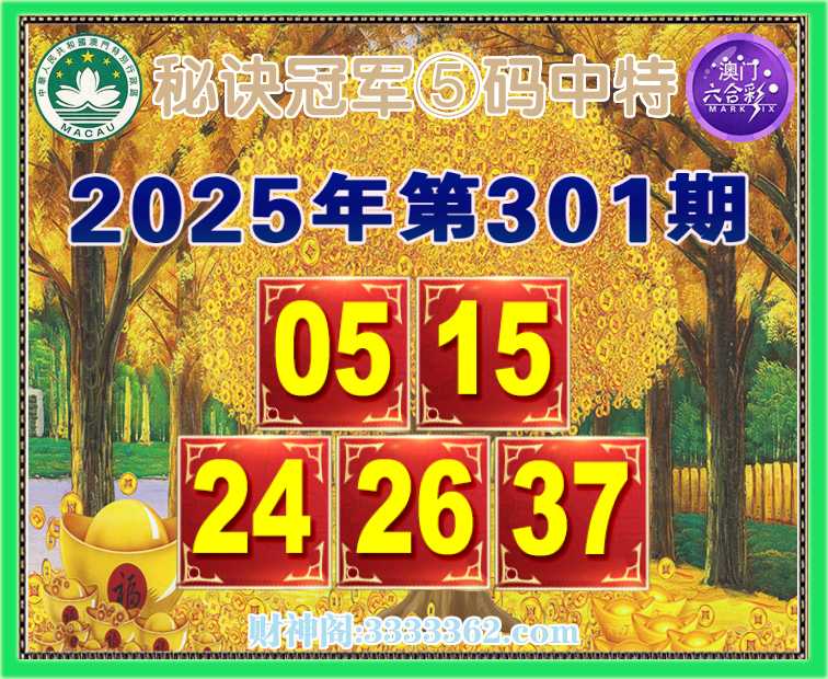 301期:『秘诀冠军』 🕯⑤码中特🕯【05.15.24.26.37】开:05