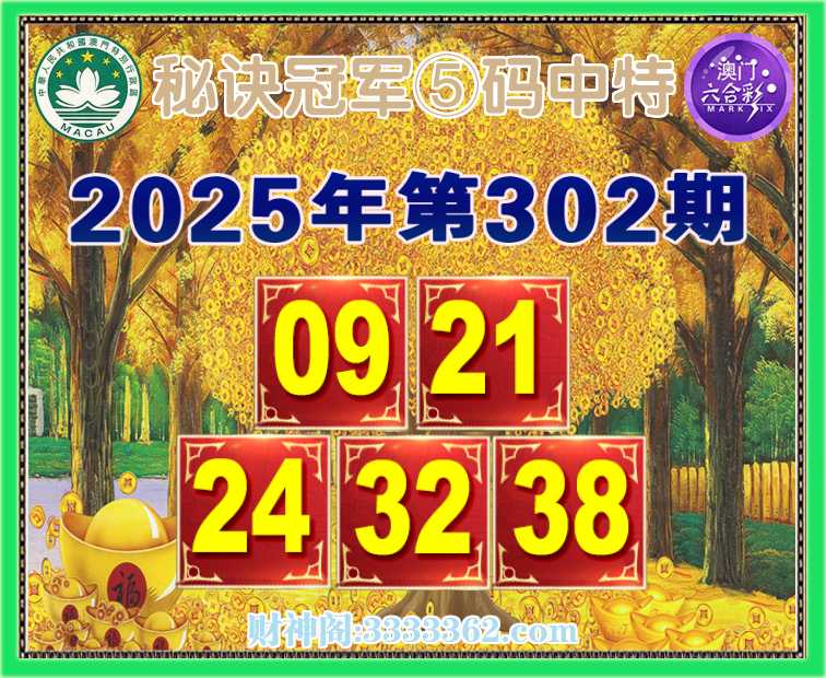 302期:『秘诀冠军』 🕯⑤码中特🕯【09.21.24.32.38】开:00准