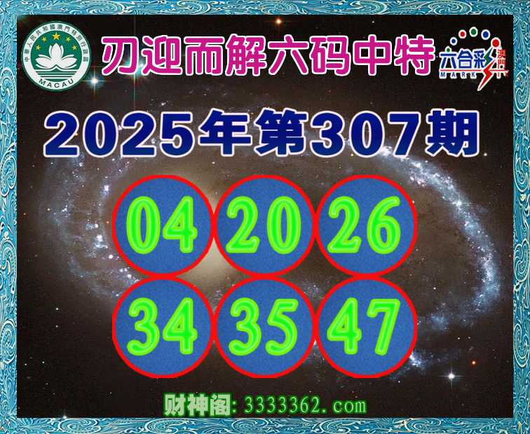 307期:『刃迎而解』 🥓六码中特🥓【04.20.26.34.35.47】开:20
