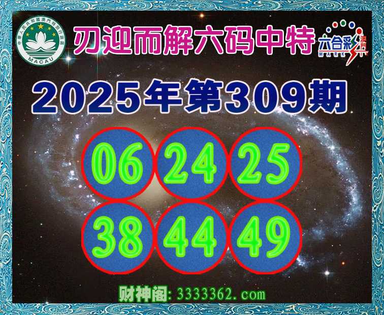 309期:『刃迎而解』 🥓六码中特🥓【06.24.25.38.44.49】开:06