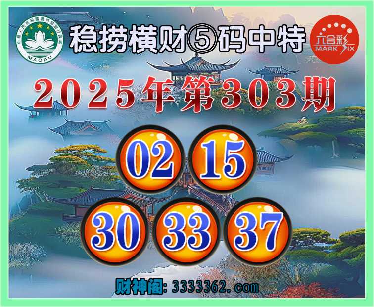 303期: 🩴『稳捞横财』 🩴⑤码中特🩴【02.15.30.33.37】开:15