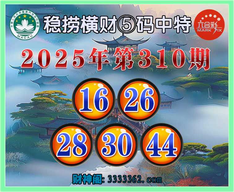 310期: 🩴『稳捞横财』 🩴⑤码中特🩴【16.26.28.30.44】开:16