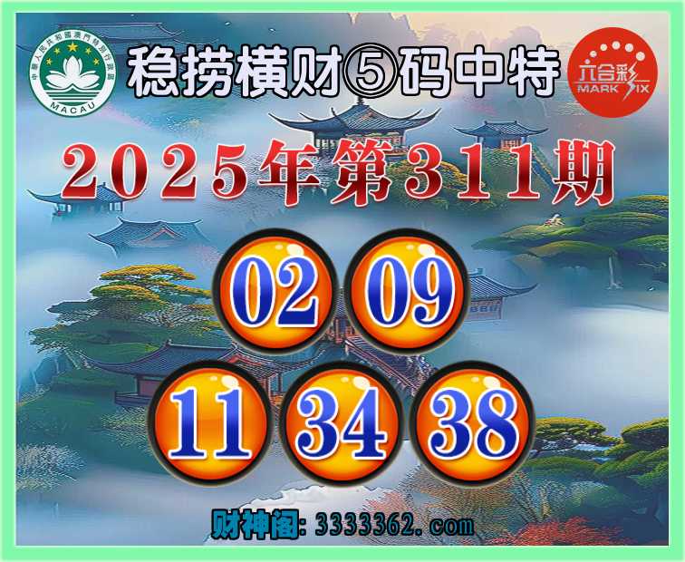 311期: 🩴『稳捞横财』 🩴⑤码中特🩴【02.09.11.34.38】开:00准