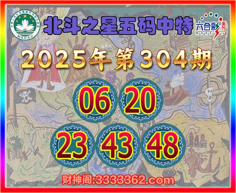 304期: 北斗之星 🥽五码中特🥽【06.20.23.43.48】开:48