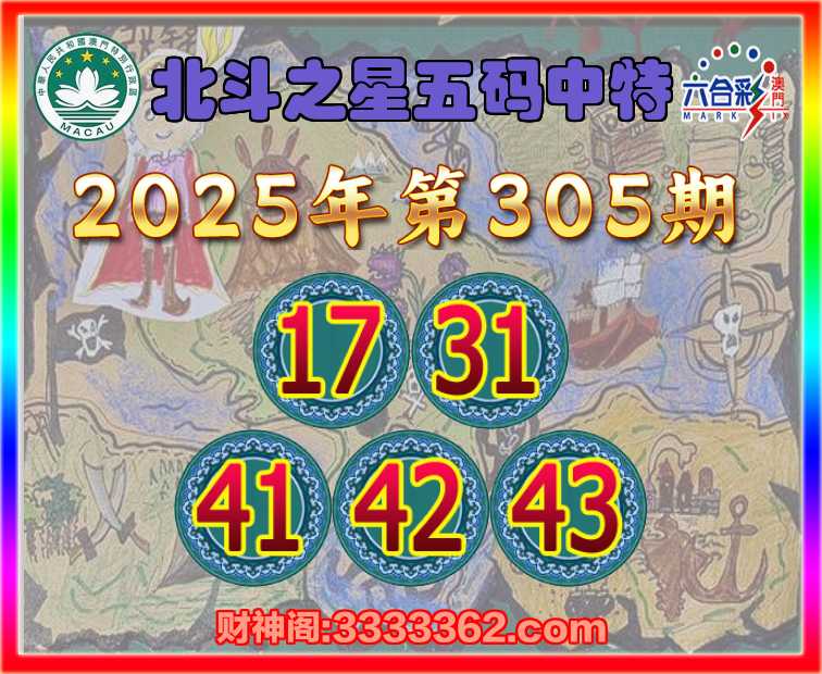 305期: 北斗之星 🥽五码中特🥽【17.31.41.42.43】开:42