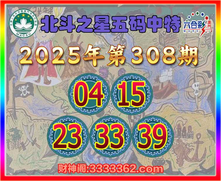 308期: 北斗之星 🥽五码中特🥽【04.15.23.33.39】开:39