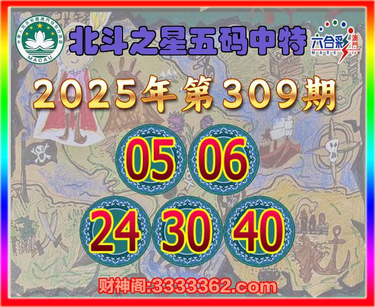 309期: 北斗之星 🥽五码中特🥽【05.06.24.30.40】开:06