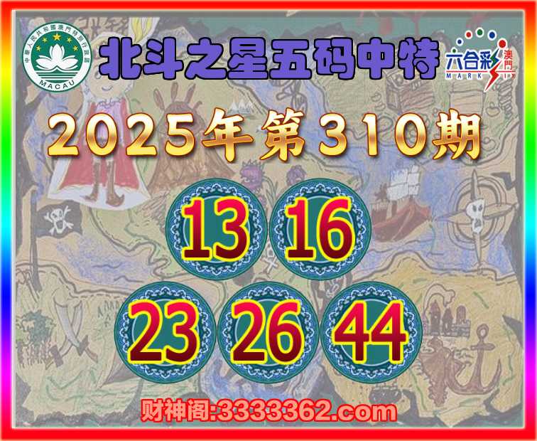 310期: 北斗之星 🥽五码中特🥽【13.16.23.26.44】开:16