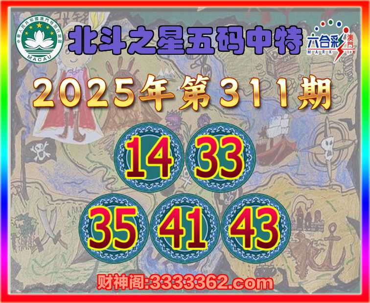 311期: 北斗之星 🥽五码中特🥽【14.33.35.41.43】开:00准