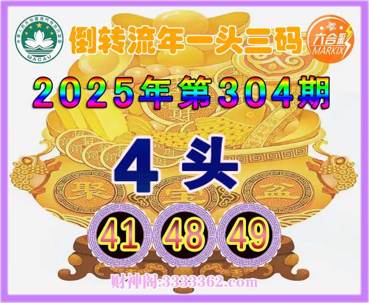 304期: 🎉『倒转流年』 🎉一头三码🎉【4头主:41.48.49】开:马48