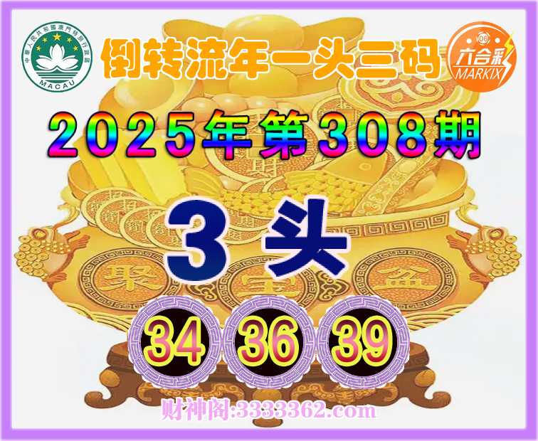 308期: 🎉『倒转流年』 🎉一头三码🎉【3头主:34.36.39】开:兔39