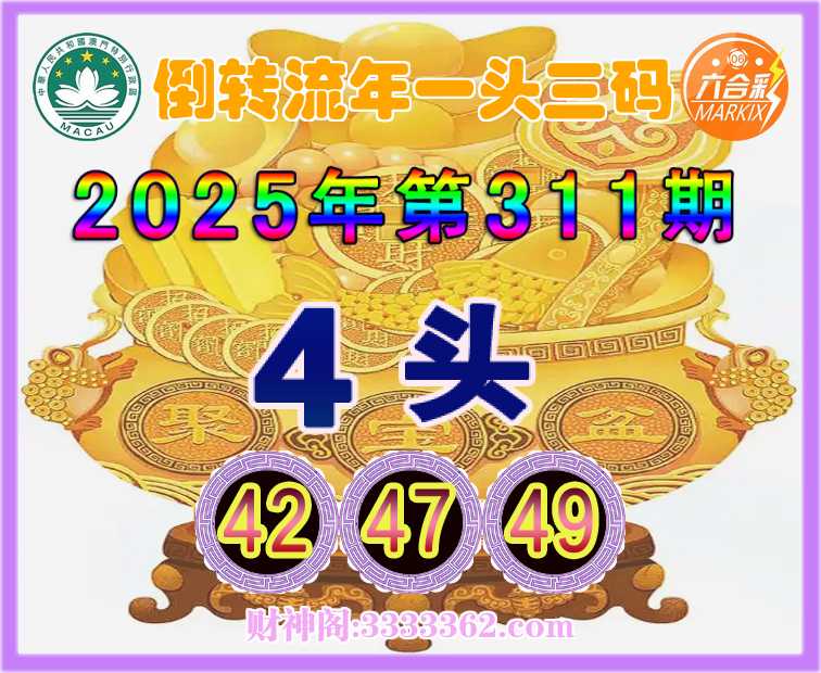 311期: 🎉『倒转流年』 🎉一头三码🎉【4头主:42.47.49】开:00准