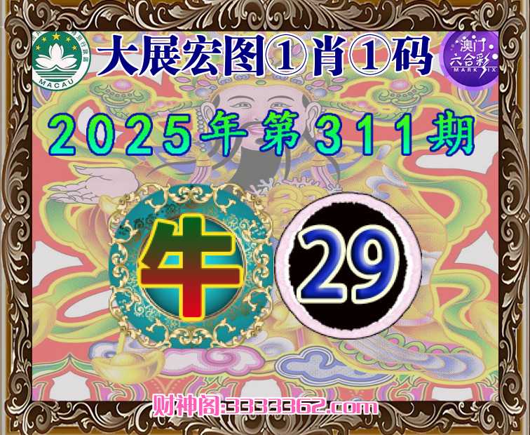 311期: 🍟『大展宏图』 🍟①肖①码🍟【牛】【29】开:00准