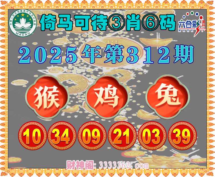 312期:【倚马可待】 🏅③肖⑥码🏅【猴鸡兔】开:00准