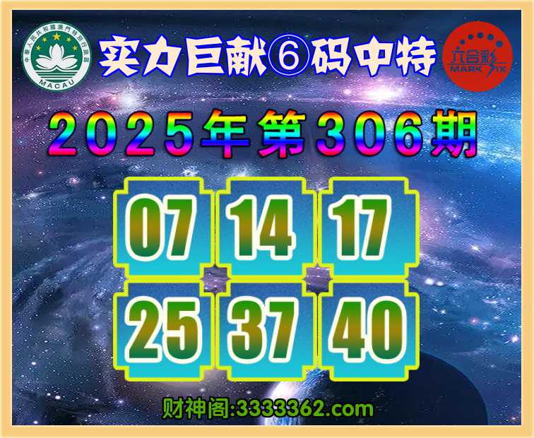 306期:《实力巨献》 🌳⑥码中特🌳【07.14.17.25.37.40】开:17