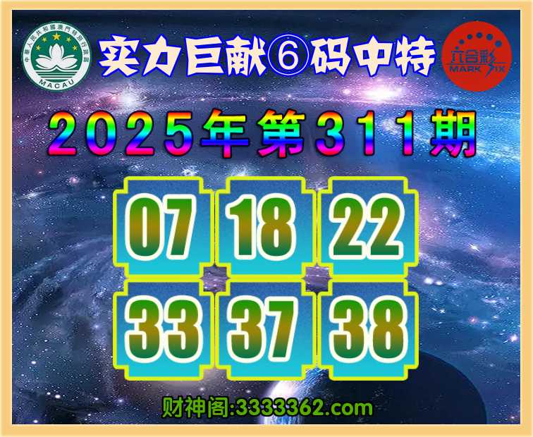 311期:《实力巨献》 🌳⑥码中特🌳【07.18.22.33.37.38】开:37