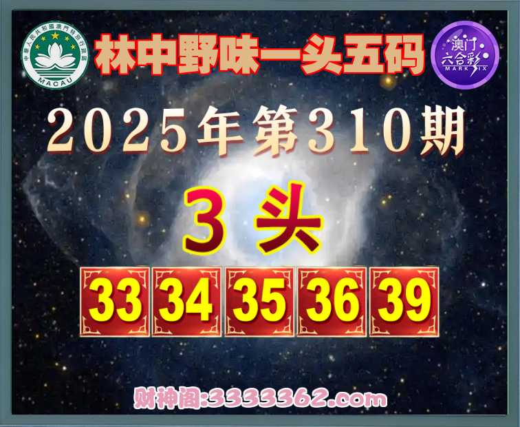 310期: 林中野味 👛一头五码👛【3头主:33.34.35.36.39】开:00准