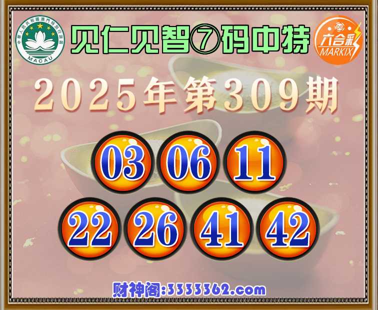 309期: 🍅『见仁见智』 🍅⑦码中特🍅【03.06.11.22.26.41.42】开:06
