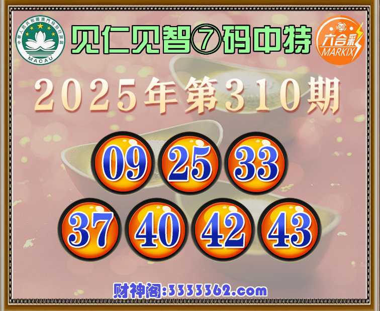 310期: 🍅『见仁见智』 🍅⑦码中特🍅【09.25.33.37.40.42.43】开:00准