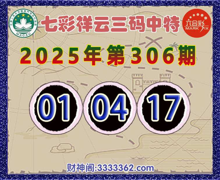 306期:《七彩祥云》 🏃‍♀️三码中特🏃‍♀️【01.04.17】开:17