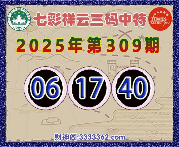 309期:《七彩祥云》 🏃‍♀️三码中特🏃‍♀️【06.17.40】开:06