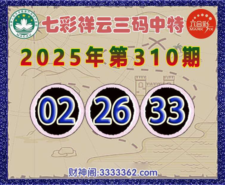 310期:《七彩祥云》 🏃‍♀️三码中特🏃‍♀️【02.26.33】开:00准