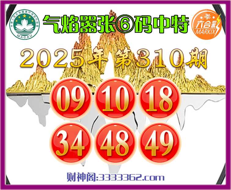 310期: 🎉『气焰嚣张』 🎉⑥码中特🎉【09.10.18.34.48.49】开:00准