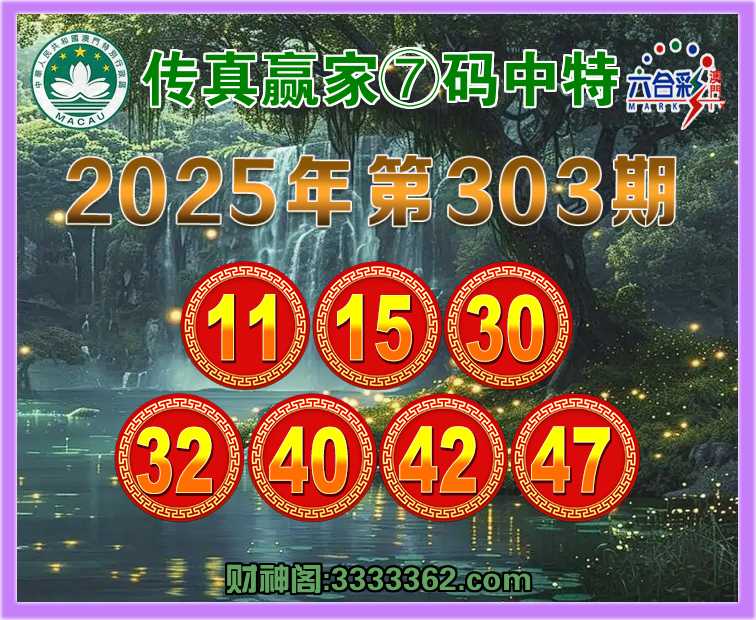 303期:『传真赢家』⑦码中特✨【11.15.30.32.40.42.47】开:15