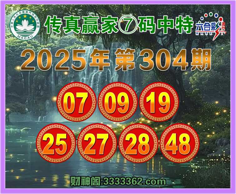 304期:『传真赢家』⑦码中特✨【07.09.19.25.27.28.48】开:48