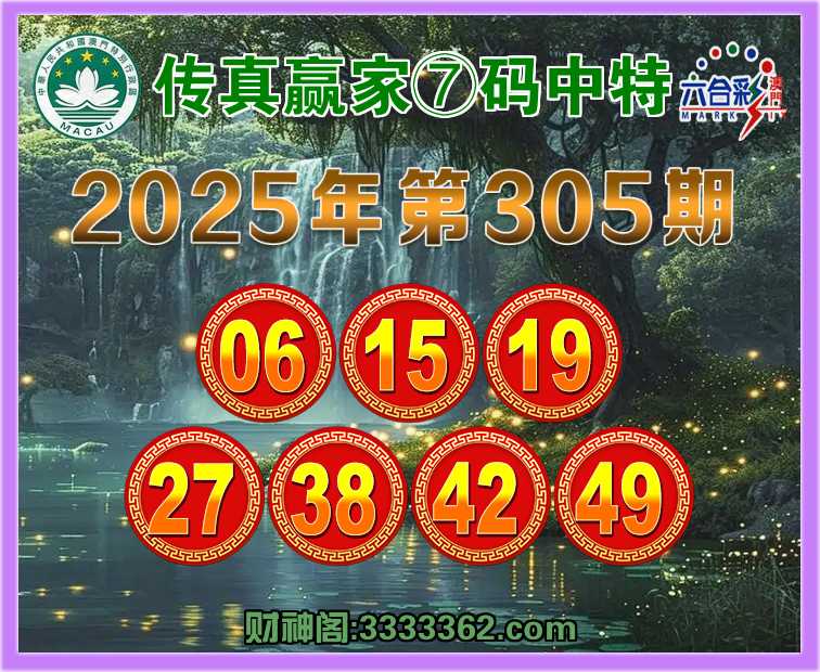305期:『传真赢家』⑦码中特✨【06.15.19.27.38.42.49】开:42