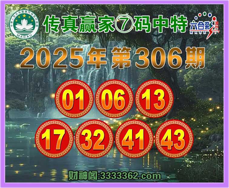 306期:『传真赢家』⑦码中特✨【01.06.13.17.32.41.43】开:17