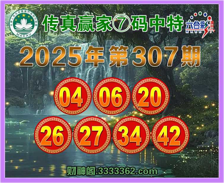 307期:『传真赢家』⑦码中特✨【04.06.20.26.27.34.42】开:20
