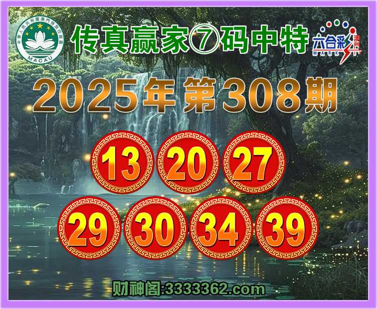 308期:『传真赢家』⑦码中特✨【13.20.27.29.30.34.39】开:39